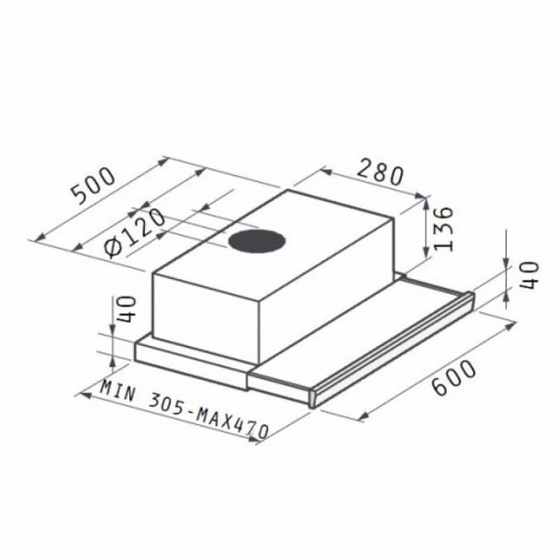 Βάθος με ανοιχτή μετόπη (min-max): 32cm-50cm