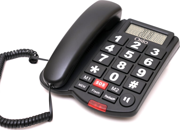 OSIO OSWB-4760B Τηλέφωνο με μεγάλα πλήκτρα, ανοιχτή ακρόαση και SOS ΕΩΣ 12 ΔΟΣΕΙΣ Ενσύρματο τηλέφωνο με μεγάλα πλήκτρα για ευκολία στη χρήση από άτομα μεγάλης ηλικίας ή με μειωμένη όραση. Διαθέτει LED που αναβοσβήνει όταν σας καλούν, δυνατό μικρόφωνο και ακουστικό και μεγάλη οθόνη. Επίσης διαθέτει 2 κουμπιά ταχείας κλήσεις και κουμπί έκτακτης ανάγκης για κλήσεις με το πάτημα ενός κουμπιού και 10 μνήμες για τους σημαντικούς σας αριθμούς. Μεγάλα κουμπιά για ευκολία στη χρήση Ανοιχτή ακρόαση LED που αναβοσβήνει όταν χτυπάει το τηλέφωνο 2 πλήκτρα μνήμης one-touch Κουμπί SOS one-touch 10 μνήμες Επανάκληση τελευταίας κλήσης Ρύθμιση έντασης ακουστικού: χαμηλό, μεσαίο, δυνατό Διακόπτης ρύθμισης έντασης ηχείου Οθόνη LCD με μεγάλα ψηφία Δυνατότητα για τοποθέτηση στον τοίχο