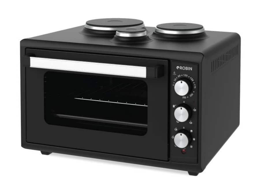 Robin ZK-75 Ηλεκτρικό Φουρνάκι 50lt με 3 Εστίες (ΕΩΣ 12 ΔΟΣΕΙΣ) Ιδανικό για: Ψήσιμο κρεατικών Ψαρικών Πίτσας Κατάλληλο για εξοχικά, φοιτητικά σπίτια και επαγγελματικούς χώρους. Διαθέτει: 2 εστίες κατάλληλες για μαγείρεμα 1 μικρή εστία για βράσιμο νερού ή ψήσιμο ελληνικού καφέ Χαρακτηριστικά & Διαστάσεις: Χωρητικότητα: 50lt Πλάτος: 50.8cm Βάθος: 44cm Ύψος: 33cm