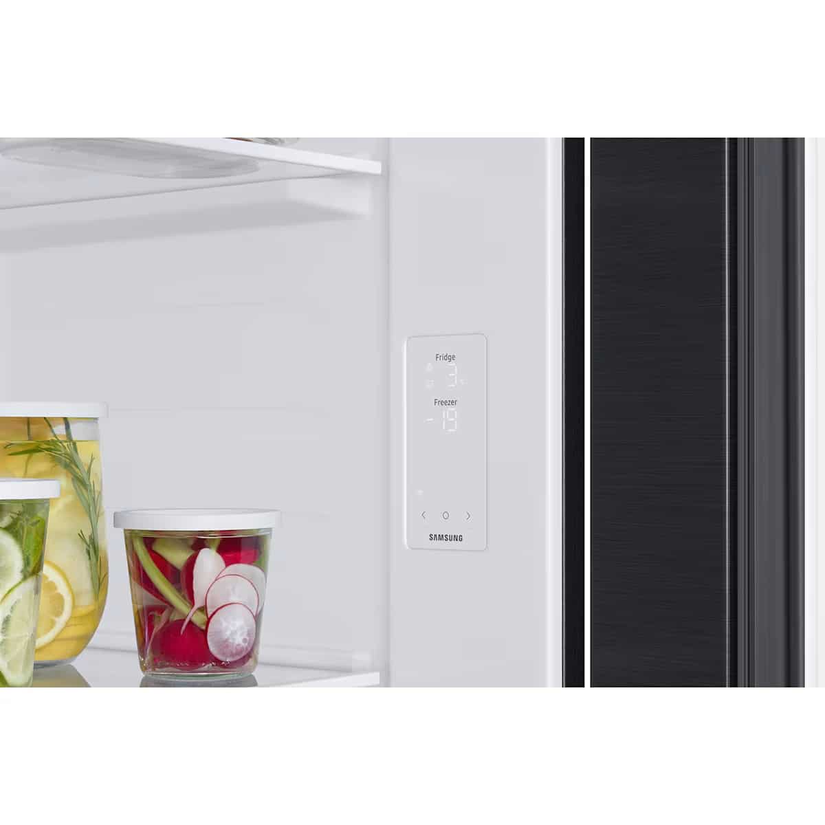 Η εσωτερική οθόνη χειρισμού και πληροφοριών Blue Ice LED, σχεδιασμένη σύμφωνα με το ADA (American Act with Disabilities), συμπληρώνει τη μινιμαλιστική σχεδίαση της συσκευής, καθώς είναι διακριτικά τοποθετημένη στα πλαϊνό μέρος του ψυγείου, ώστε να είναι εύκολα προσβάσιμη και από άτομα με κινητικές δυσκολίες.