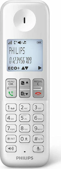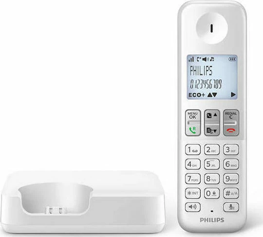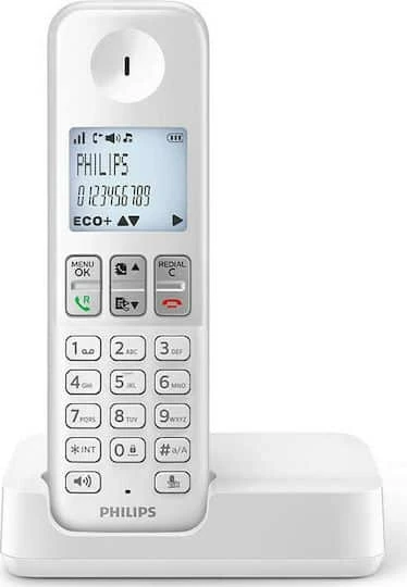 Philips D2501W-34 Ασύρματο Τηλέφωνο με Ελληνικό Μενού Λευκό