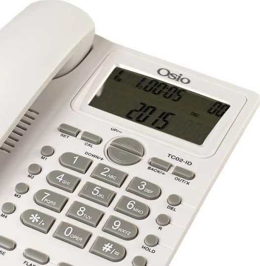 Σταθερό τηλέφωνο Osio OSW4710, με καταγραφή 50 αριθμών στη λίστα εισερχόμενων κλήσεων, 15 αριθμών στη λίστα εξερχόμενων κλήσεων, ένδειξη ημερομηνίας και ώρας στην οθόνη και ρύθμιση φωτεινότητας της οθόνης LCD σε 5 βήματα, 4 πλήκτρα μνήμης και δυνατότητα στερέωσης του τηλεφώνου και στον τοίχο.