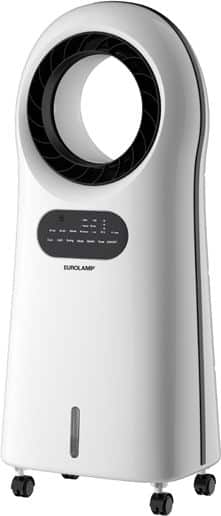 Ανεμιστήρας AIR COOLER λευκού χρώματος, χωρίς φτερωτές. Διαθέτει RGB φωτισμό, έλεγχο με κοντρόλ και ιονιστή. Χωρητικότητα 3,5L και ισχύς 110W.