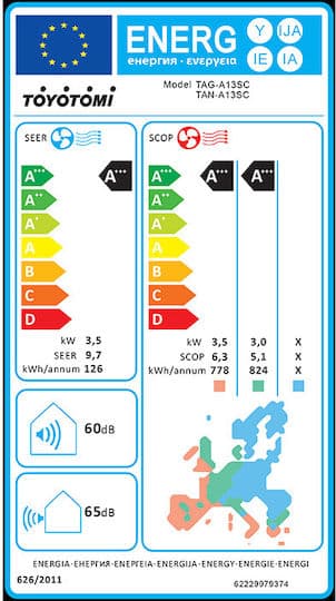 - Βαθμός Απόδοσης Θέρμανσης (SCOP)