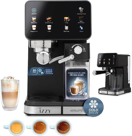 Izzy IZ-6020 Μηχανή Espresso 1450W Πίεσης 20bar για Cappuccino Μαύρη (224795)