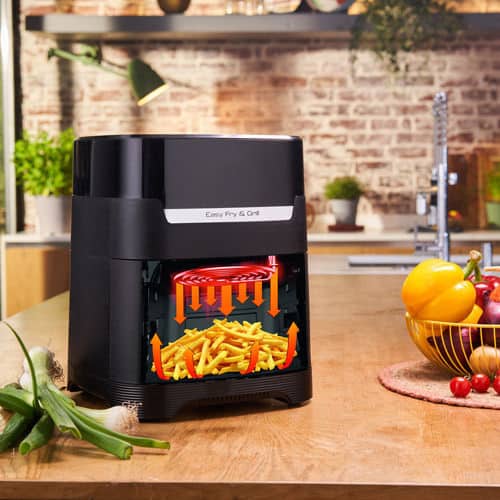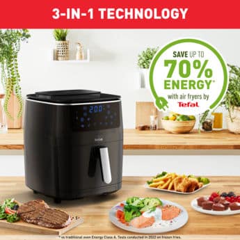 Η φριτέζα αέρος της Tefal με ισχύ 1700W και κάδο 6.5 λίτρα, είναι μια ιδανική λύση για να μαγειρεύετε πιο υγιεινά και οικονομικά σε σχέση με τις κλασικές φριτέζες, καθώς χρησιμοποιεί ελάχιστο λάδι (1-2 κουταλιές). Εκτός από πατάτες μπορείτε να μαγειρέψετε διάφορα φαγητά όπως κοτόπουλο ή λαχανικά. Διαθέτει αποσπώμενο κάδο για να καθαρίζεται ευκολότερα και ρυθμιζόμενο θερμοστάτη για να μπορείτε να μαγειρέψετε φαγητά που απαιτούν διαφορετικές θερμοκρασίες ψησίματος.