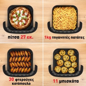 - Εξαιρετικά μεγάλη επιφάνεια, ιδανική για 1kg τηγανητές πατάτες, πίτσες 27cm, 30 φτερούγες.