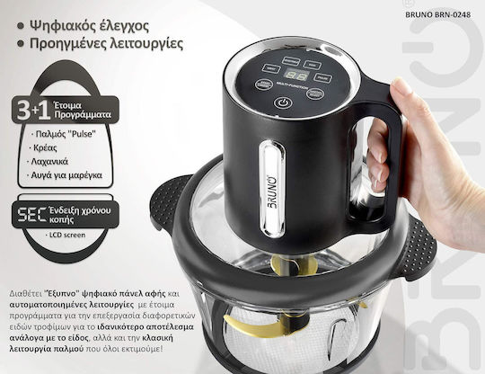 Bruno Πολυκόπτης Προηγμένων λειτουργιών, Ψηφιακός BRN-0248, 500W, 1.8L, 4 Λεπίδες, Μαύρος BRN-0248