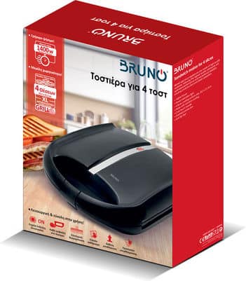Η Ψηστιέρα-Τοστιέρα για 4 τοστ BRUNO BRN-0216 είναι ιδανική για ψήσιμο τοστ, σπιτικών σάντουιτς και άλλων snack σε σύντομο χρόνο.