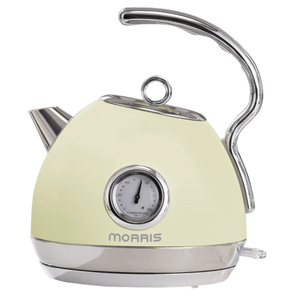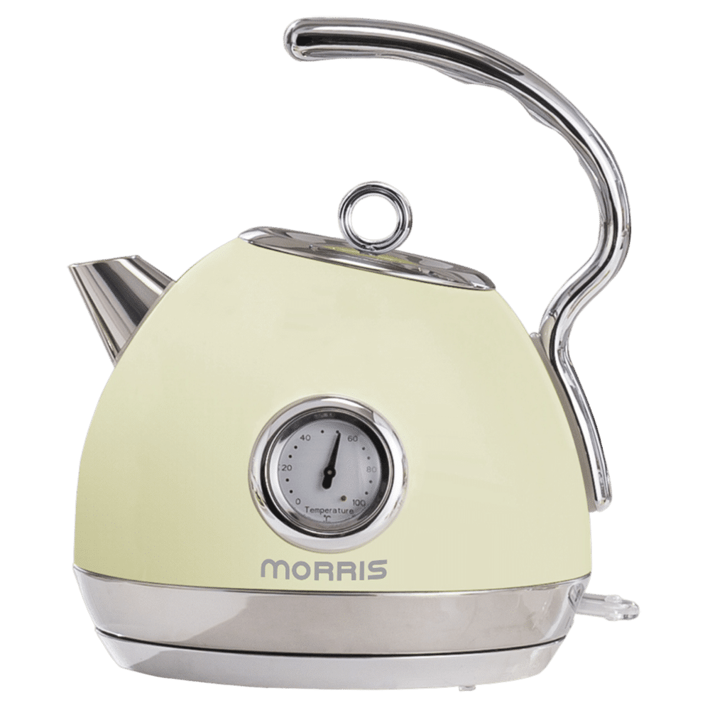 Βραστήρας Morris Retro Series με χωρητικότητα 1,8 λίτρα και ισχύ 2200W, σχεδιασμένος για ταχύτητα και αξιοπιστία στην καθημερινή χρήση. Το σώμα από υψηλής ποιότητας ανοξείδωτο ατσάλι συνδυάζει αντοχή με εκλεπτυσμένο αισθητικό χαρακτήρα, ενώ η προηγμένη τεχνολογία ασφαλείας με STRIX controller εξασφαλίζει αυτόματη απενεργοποίηση όταν η κανάτα απομακρυνθεί από τη βάση, μόλις ολοκληρωθεί ο βρασμός ή σε περίπτωση έλλειψης νερού – προσφέροντας απόλυτη ηρεμία σε κάθε χρήση.