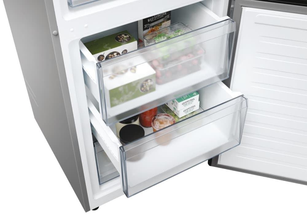 Αυτό το ψυγείο 60 cm έχει χωρητικότητα 409 λίτρων και παρέχει χώρο για αποθήκευση μεγάλης ποικιλίας τροφίμων. Επιπλέον, τα μεγάλα συρτάρια του καταψύκτη σας επιτρέπουν να έχετε επιπλέον χώρο για ογκώδη αντικείμενα.
