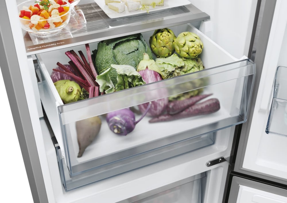 Αποθηκεύστε τα φρούτα και τα λαχανικά με ηρεμία στο αυτορυθμιζόμενο συρτάρι υγρασίας και διατηρήστε τις ιδανικές συνθήκες με τις ίνες Natura, οι οποίες παρέχουν αυτόματα το ιδανικό επίπεδο υγρασίας.
