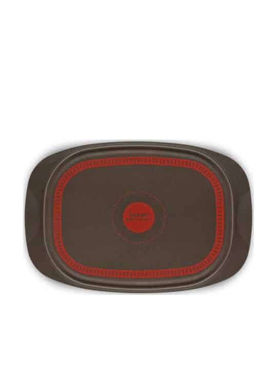 Το ορθογώνιο ταψί της εταιρείας Tefal είναι κατασκευασμένο από αλουμίνιο, ένα υλικό που το κάνει ελαφρύ, ιδιαίτερα ανθεκτικό στη σκουριά και πολύ γρήγορο στο ζέσταμα. Διαθέτει αντικολλητική επίστρωση για να μην κολλάει το φαγητό. Για να διατηρήσετε άθικτη την επίστρωση που διαθέτει, σας συμβουλεύουμε να αφήνετε το σκεύος σας να κρυώσει πριν το καθαρίσετε και να αποφεύγετε το σύρμα καθαρισμού. Προτιμήστε ένα μαλακό, συνθετικό σφουγγάρι.
