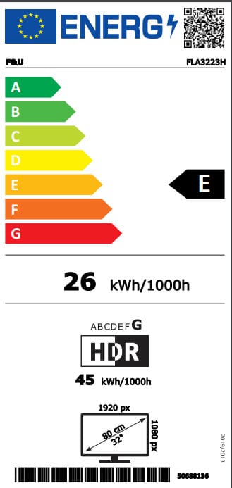 Το μοντέλο FLA3223H της εταιρίας F&U, διαθέτει μέγεθος οθόνης 32″. Η ελάχιστη προτεινόμενη απόσταση θέασης για το συγκεκριμένο μέγεθος είναι 1.2m και η μέγιστη προτεινόμενη είναι 2m. Το μέγεθος αυτό προτείνεται για τοποθέτηση σε μικρότερα δωμάτια, ή υπνοδωμάτια.