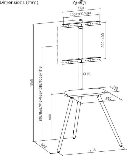 - μέγιστο φορτίο: βάση τηλεόρασης: 35kg, ράφι: 10kg